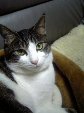 ●外見:鼻~お腹~足まで白、背中がキジトラです