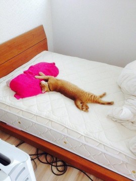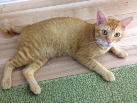 背中は虎猫のシマ模様がはっきりせず 黄な粉色一色に近いです。