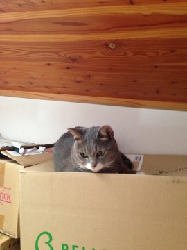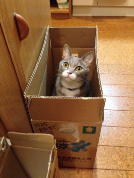 グレーのトラ柄鍵しっぽの去勢済みの雑種オス猫です。