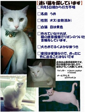 迷い猫ちゃんたちが1日も早くおうちに戻られますよう