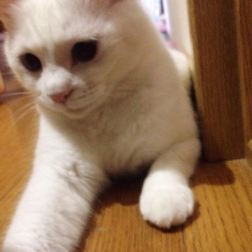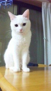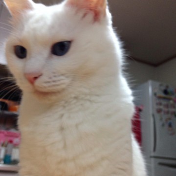 真っ白で瞳がブルーです。