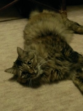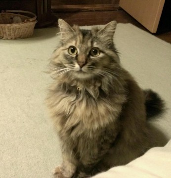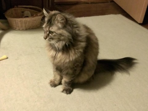 体重約4kg。茶色系の長毛、尾も長めです。