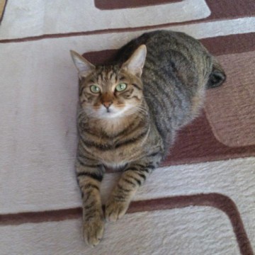・補足:キジトラ、茶と黒で、目はグリーン。
