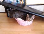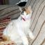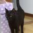 茶色のチェックの首輪 しっぽが短くうちわ型 メタボ体型