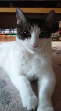 頭はとしっぽは黒いもようがありますが、体は真っ白です。