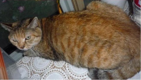 茶色の縞柄 長い尻尾で尻尾の先が白