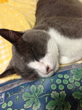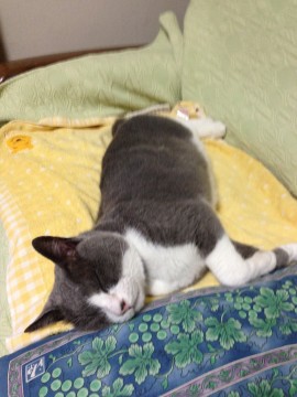 頭や背中に綿埃(わたぼこり)の塊をつけて帰ってきましたので、おそらく、どこかの床下にいたようです。