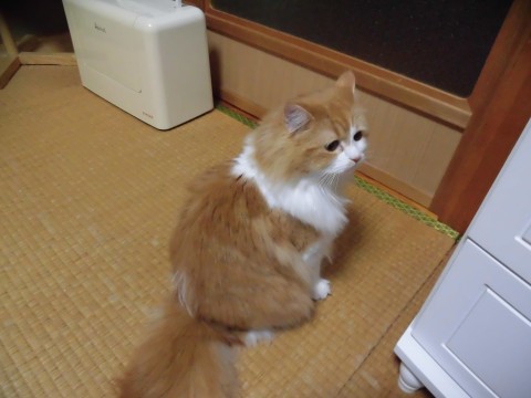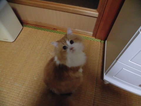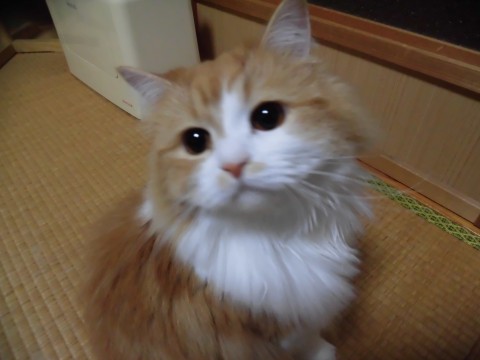 立ち耳スコティッシュフォールドで毛色は茶白です。