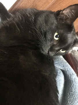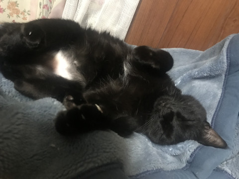 しっぽは短いですか? 我が家に去年から現れた黒猫ちゃんはいますが、その子もお腹が白くお顔が似てる気が…、でもしっぽは短くぴんと真っ直ぐです。