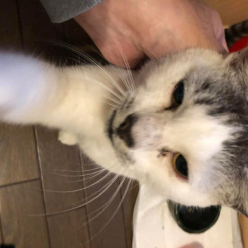 首輪をしていて人馴れしている飼い猫です