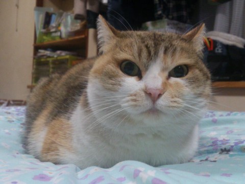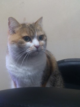 元野良猫で、生後半年くらいの時に我が家の庭にフラッとやってきて、そのまま我が家に居着きました。首輪はしてません。