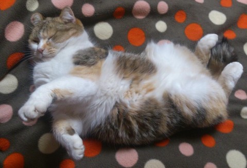 避妊済。お腹の毛は白く、避妊手術の痕が若干残ってます。