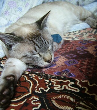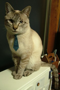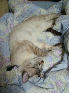 ●自分はポテだと認識してます。●外出時、赤色のリボン(蝶ネクタイ)首に付けています。●耳 手のひら 脚の裏 しっぽの先 大事な所(ハートマークに見えます)と部分的に濃い茶色です。●手足の先になればなるほど縞模様です、尾は完全に縞々です。●人間大好き、猫大嫌いです●鳥を見つけるとクケケケケと言います