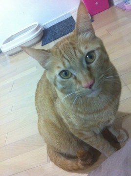 茶トラ、尻尾が長い、人懐こい、ビビり、去勢済み