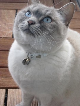 白色の鈴がついた首輪をしています。