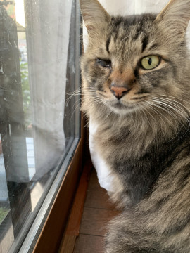 車の上や荷台に乗るくせがあったので宅配便の車の荷台などに乗って遠方にいるかも知れません。