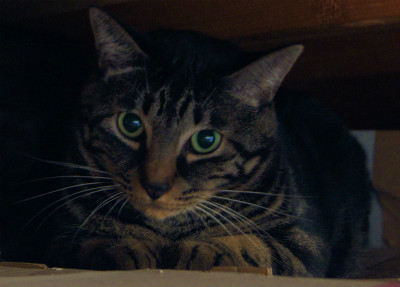 ・雑種、毛色はブラウンのクラシックタビー、目はグリーン
