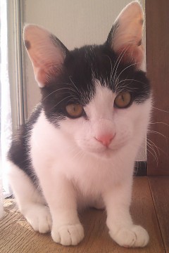 性格は臆病で両耳は白く両耳に黒の斑点があります
