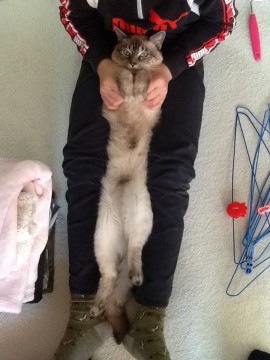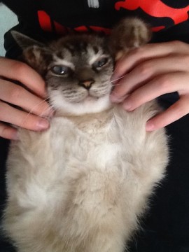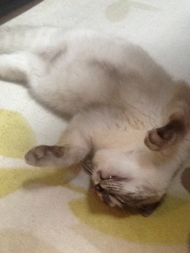 野良猫とケンカしたためか、身体中に引っ掻き傷がありましたが、元気そうです。2キロくらい痩せていました。