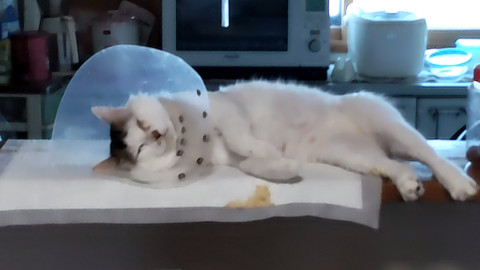 昨年、ネコの喧嘩でしっぽに菌が入り、しっぽが壊死してしまいました。小型犬くらいの大きいシロネコです。首輪はしていませんが、人になれています。