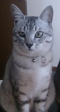 特徴 /白とグレーの縞模様(アメリカンショートヘアに似ていますが、サバトラのような模様です)