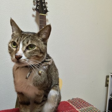 青い首輪で、色柄はキジシロです。
