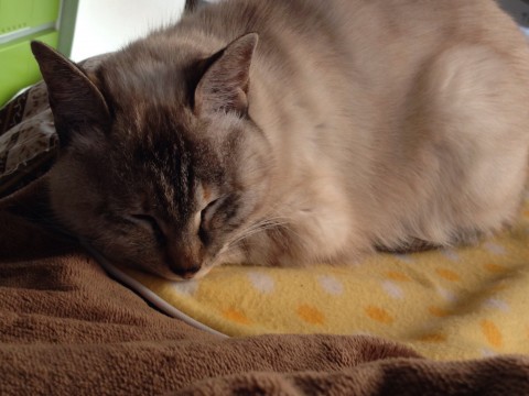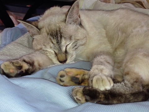 身体はシロく手足と尻尾がシログレーのシマシマ柄