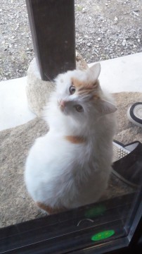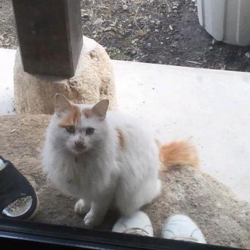 昨年12月ぐらいから我が家の裏庭に住み着くようになり、それから家族の一員として一緒に過ごしてきました。人懐っこく甘えん坊ですが、知らない人には慣れるまで初めは警戒する子です。首輪はしていません。