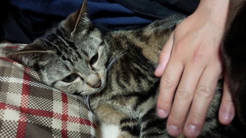 路地裏に打ち捨てられてたバイクの下で見つかりました。すっかり警戒してしまって、つれて帰るまでに二時間以上かかりました。つれて帰ったら少し落ち着いて、ご飯もしっかり食べました。