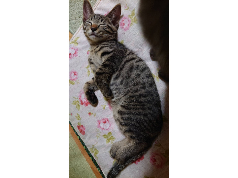 キジトラ、尻尾が長い、甘えん坊、警戒心が強い