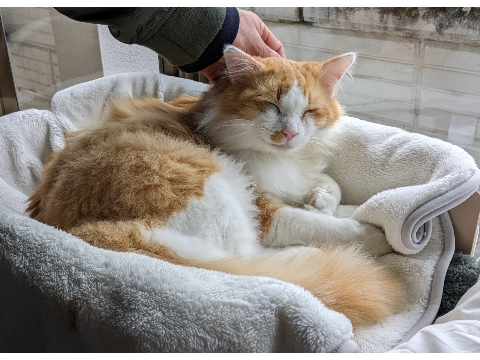 この子は大人しかったのですが、わたしに甘えるこの子に先住猫が不安定になり、体の大きなこの子をケージに閉じ込めて仕事に行くのも可哀そうで、また家族の理解も得られず、この子をゆったり過ごさせてくれる譲渡先を探しました。