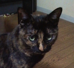 毛色に特徴のある(黒、こげ茶、茶色)サビ猫です。
