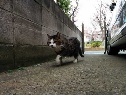 自宅の駐車場位、半径15~20mしか散歩しない老猫が