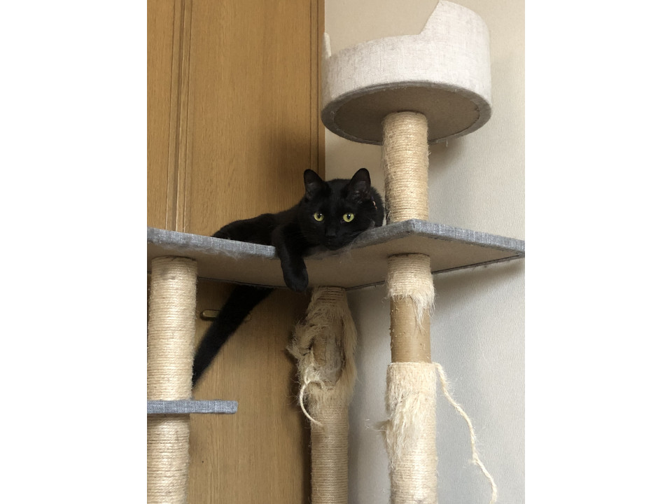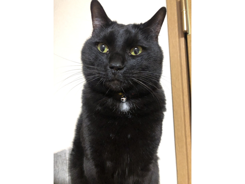 黒猫で胸元が白です。少し臆病ですが活発です。