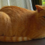赤い首輪(白い花のチャームと鈴付き)をしています。ぽっちゃり気味で、人に撫でられるのが好きです