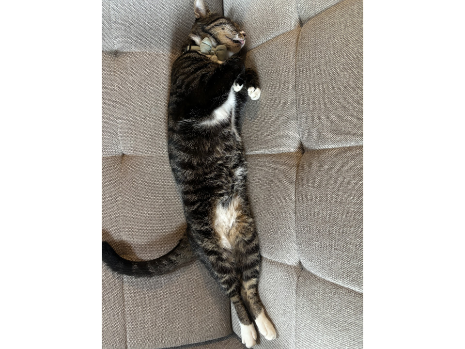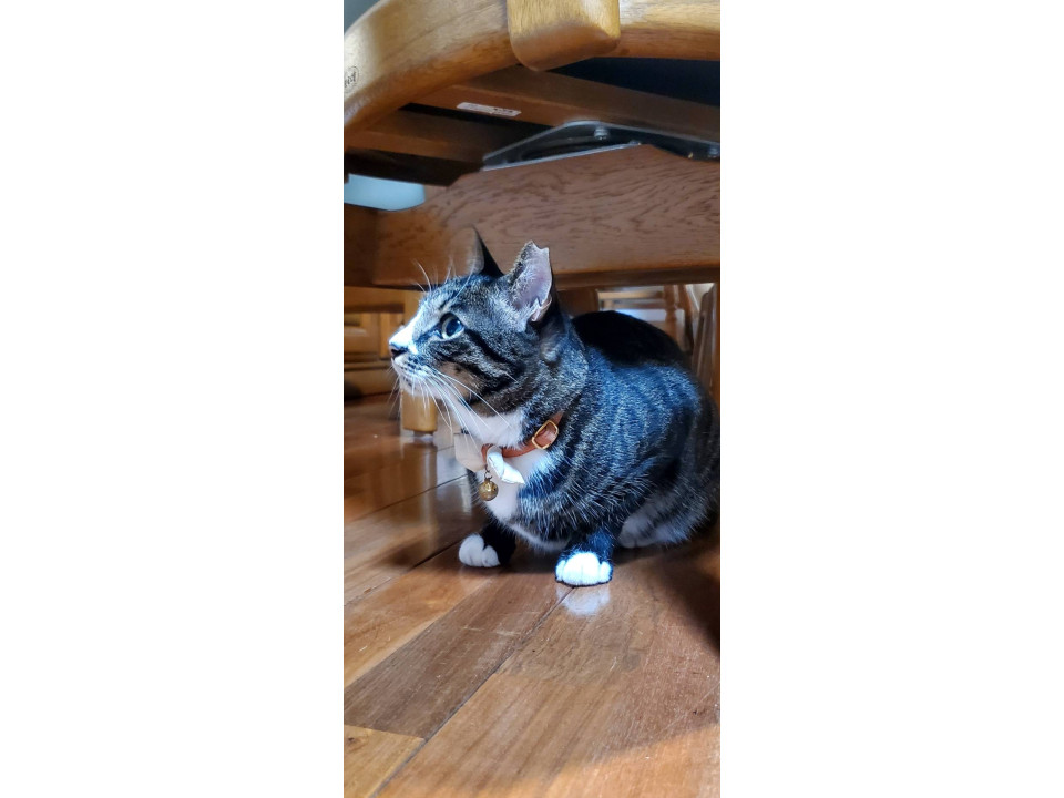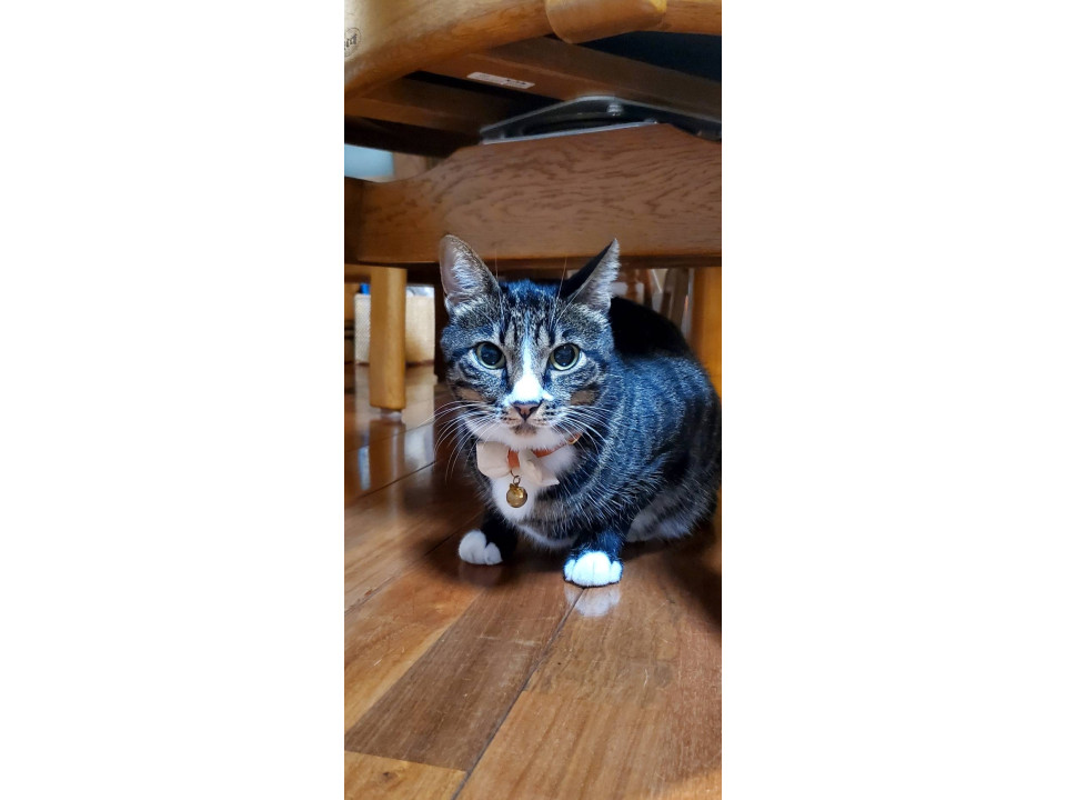 声が凄く可愛いです。左耳をサクラカットしてます。鼻の周りとお腹の一部、足先が白くてソックスを履いたような猫ちゃんです。
