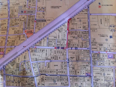 画像の地図上、丸で囲んだ藤本と書いてあるところがneigHBorで、普段は網戸で外へ出ないようにしてあるのですが、お客さんがお店に入る隙にスルッと抜けて道を北に走って行きました。