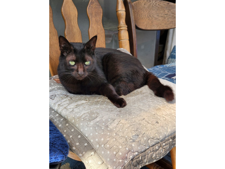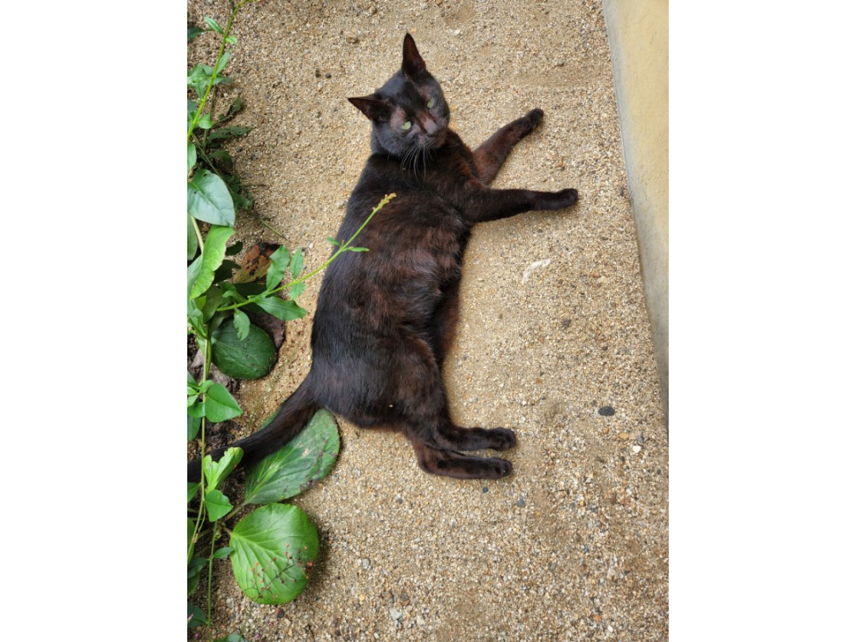 中サイズの黒猫で 鳴き声は小さく可愛い声で鳴きます。