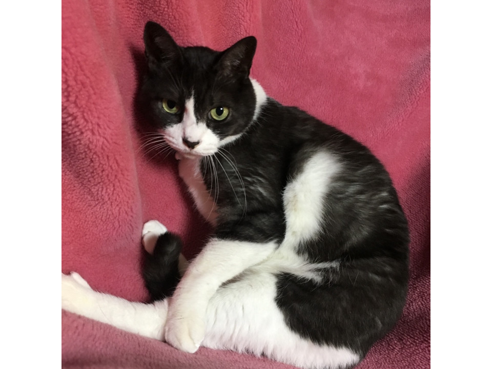 白黒のハチワレ、尻尾長め、手足は白、声はしゃがれ気味、首輪なし、去勢済み、16歳のおじいちゃんです。