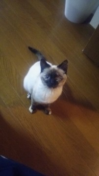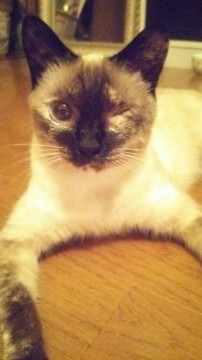 左目が失明して閉じた状態のシャム猫の♀です。