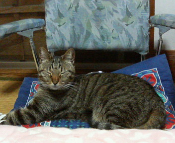 オレンジ色の首輪(鈴なし)をしていて、しっぽは20cmくらいあります。