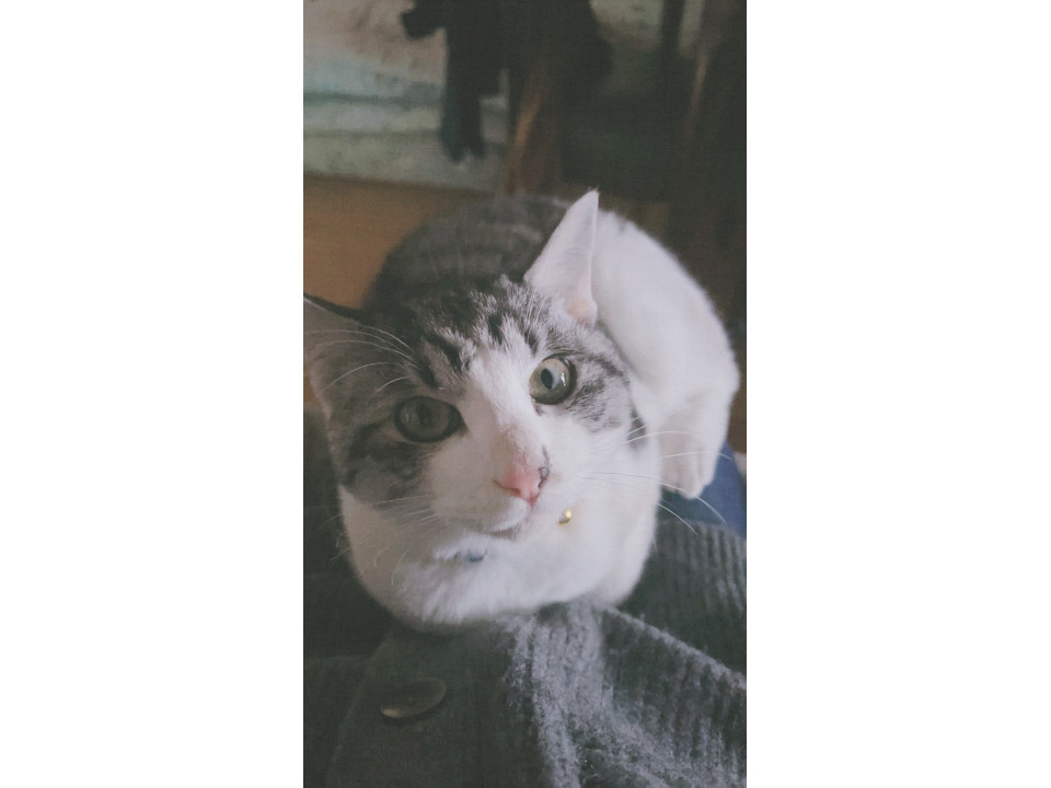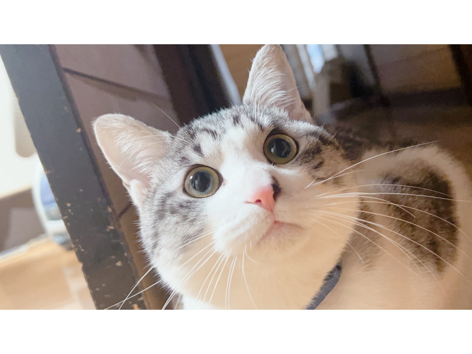 かぎしっぽのサバトラです。お鼻のところが黒くなってます