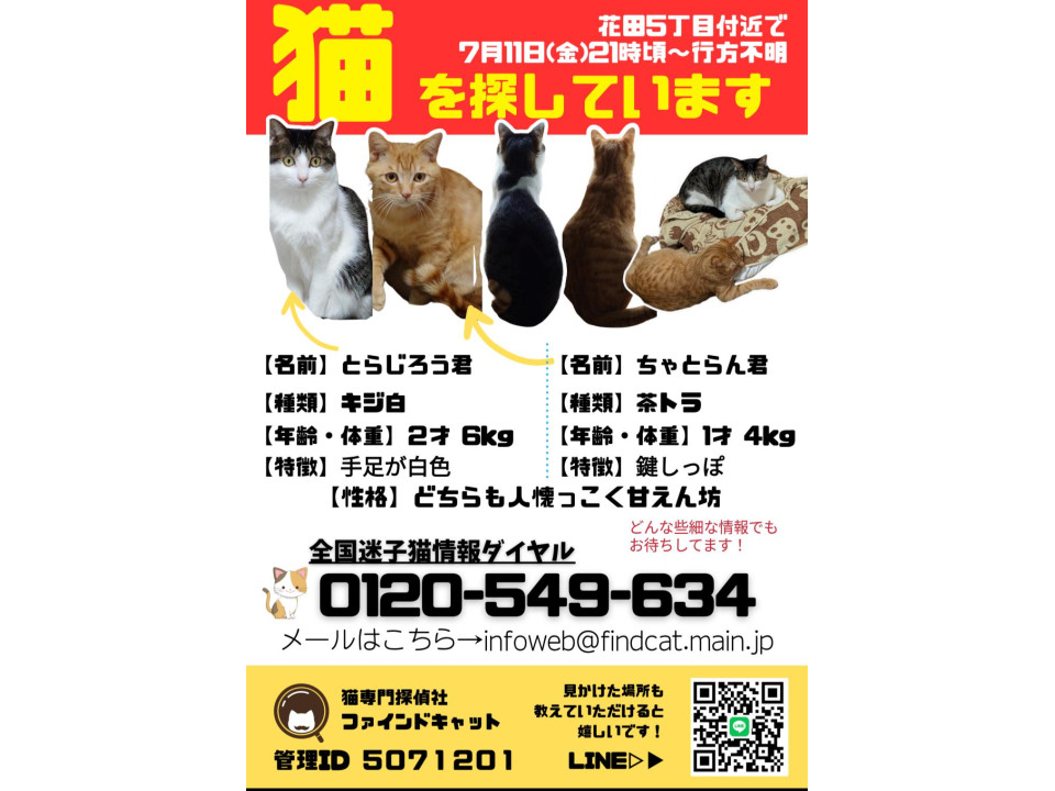 (同様にキジ白のとらじろうの方も投稿させて頂いております。同じタイミングでの失踪になります。よろしくお願い致します。)