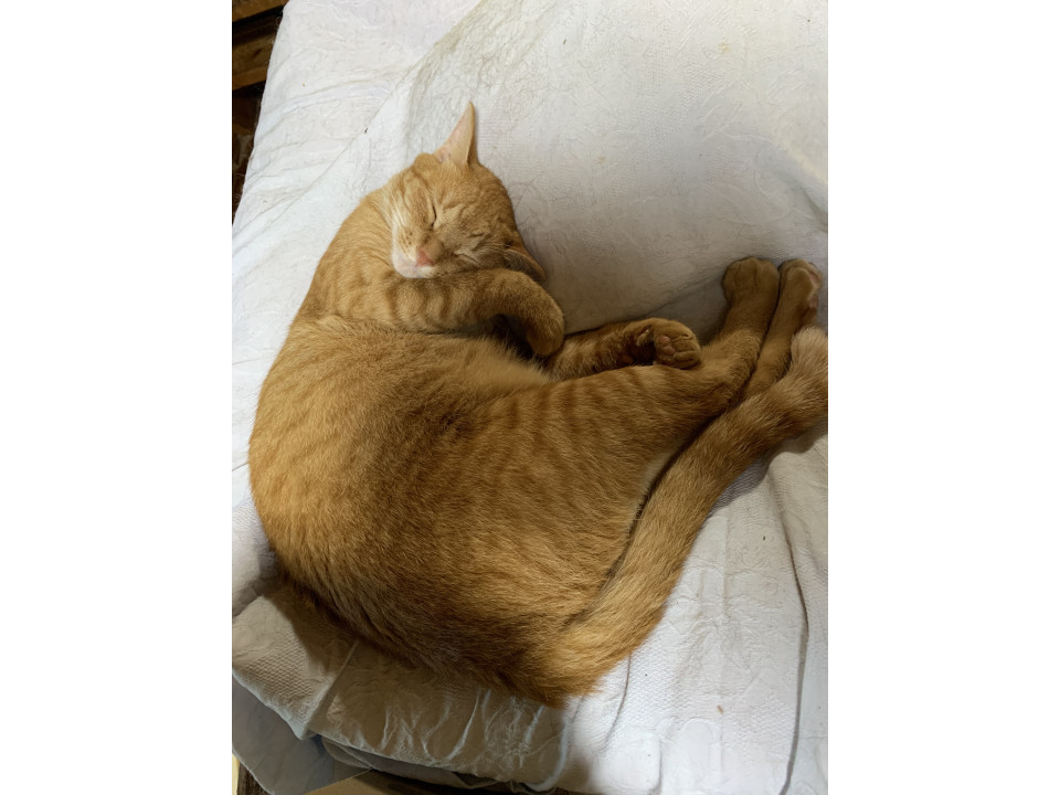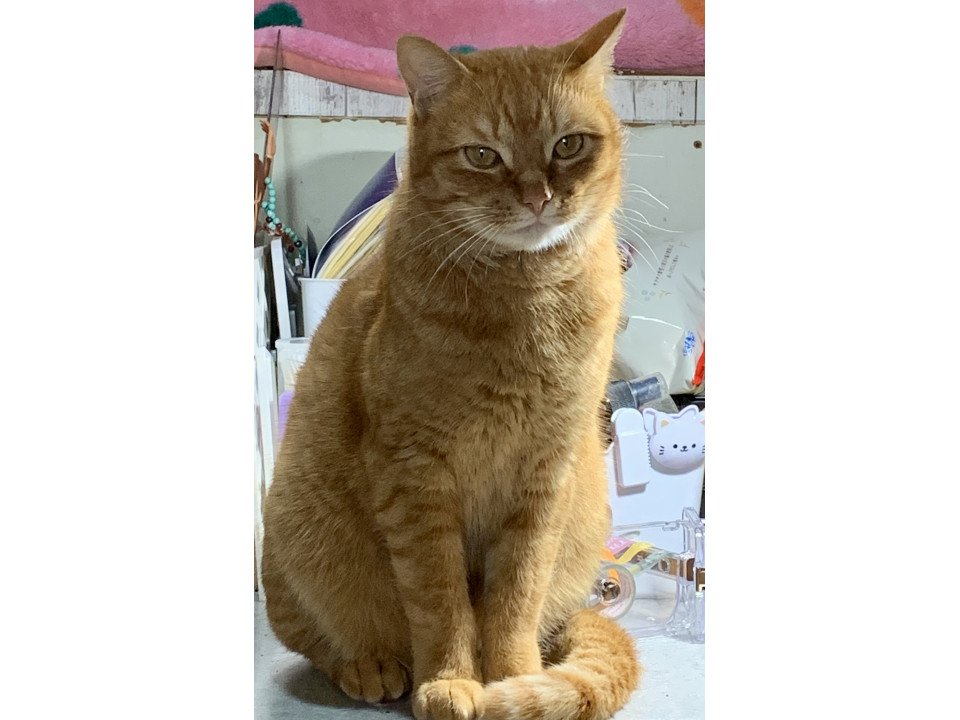 白い所は口元に少しあるだけの、全身茶トラの去勢済みのオス猫。