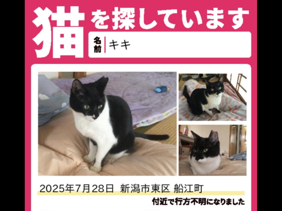 目撃情報などありましたら、連絡いただけると幸いです