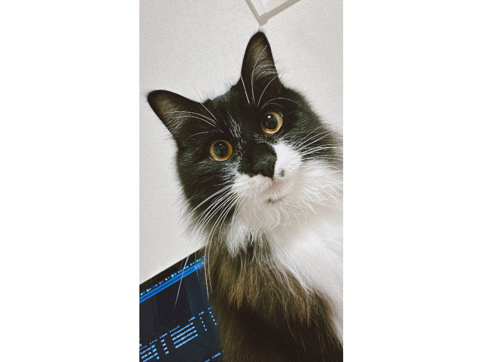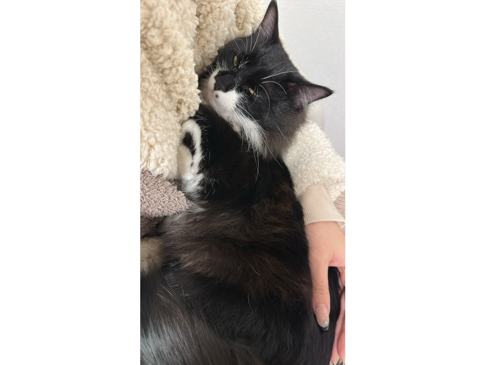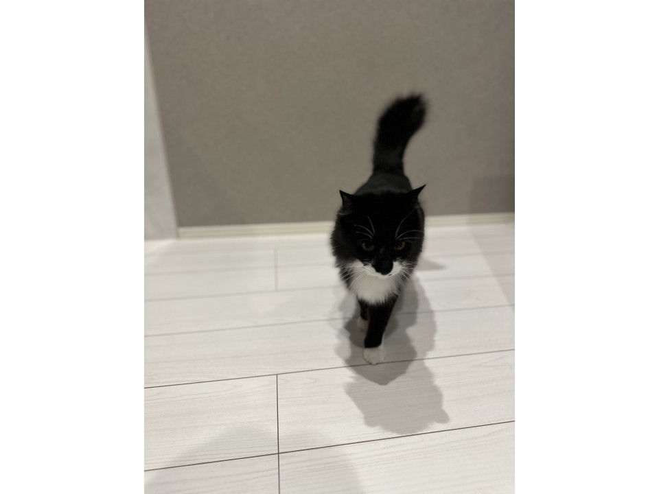 白黒猫、口元にほくろ柄、顎下に大きいほくろ