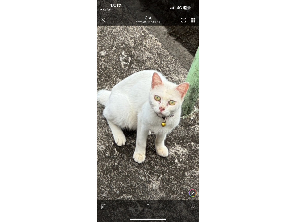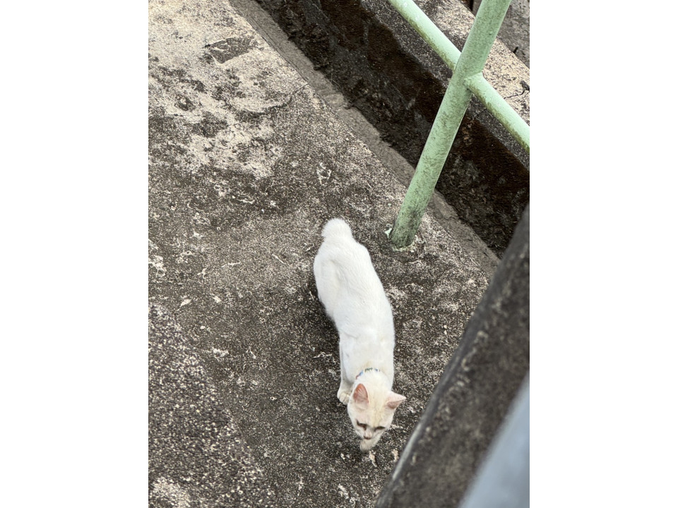 車が通る道路の端で横になっていました。車がなん度も通っても動かないため事故にあったのかと思いましたが、近づくと逃げました。首輪をしています。痩せていました。近くにフードを与えられた形跡あり。わたしも食べ物を置いてきました。