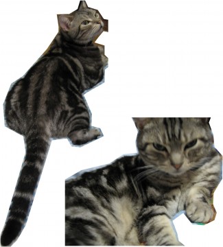 黒と白の縞々で、種類はアメリカンショートヘアーです