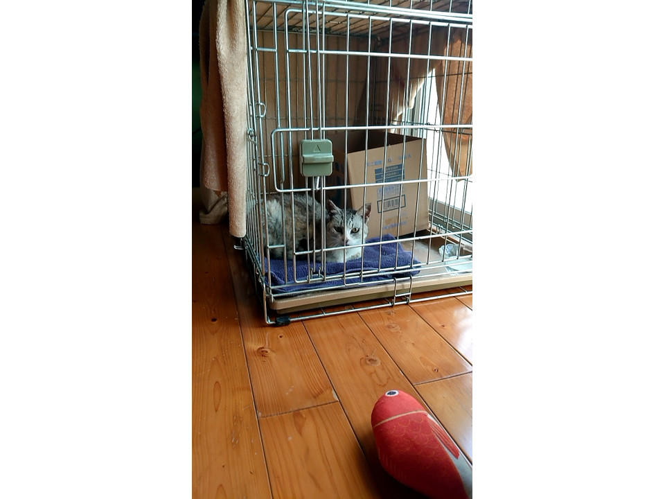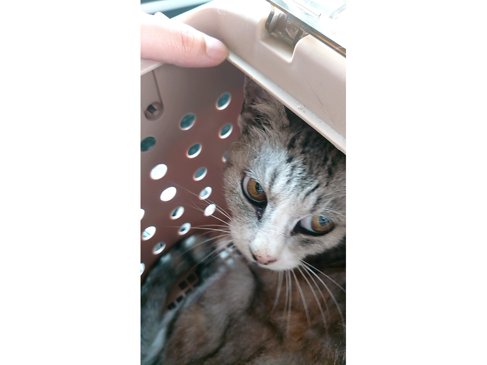 ガリガリで、ケガもしてますが食欲もありモリモリ食べてます。
