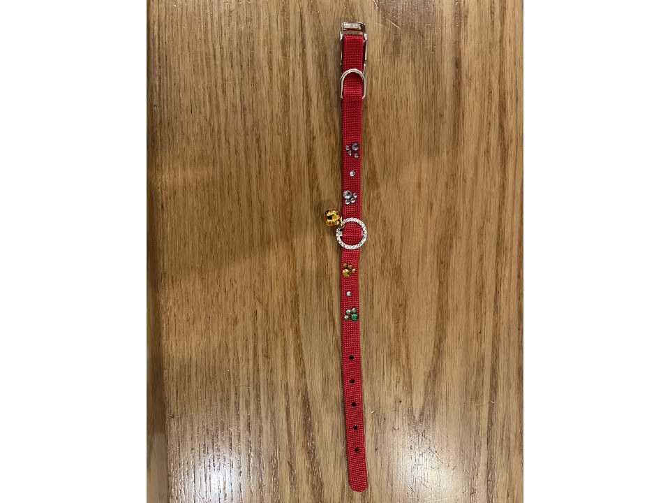 ラインストーンと鈴のついた赤い首輪をしていました。